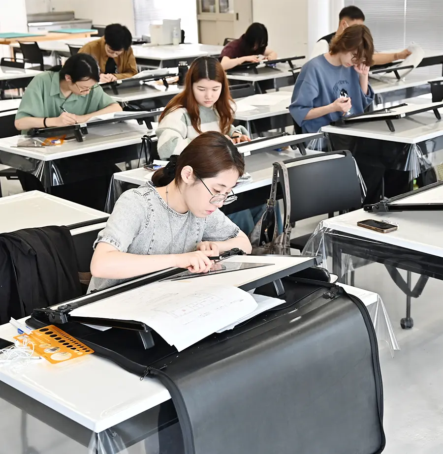 「建築クリエイター科ってどんな学科?」「校舎や教室、先生はどんな人?」「就職についても知りたい」など、学科の説明や専門技術の学びかた、授業や学校生活、卒業後の進路などについて、わかりやすく説明します。