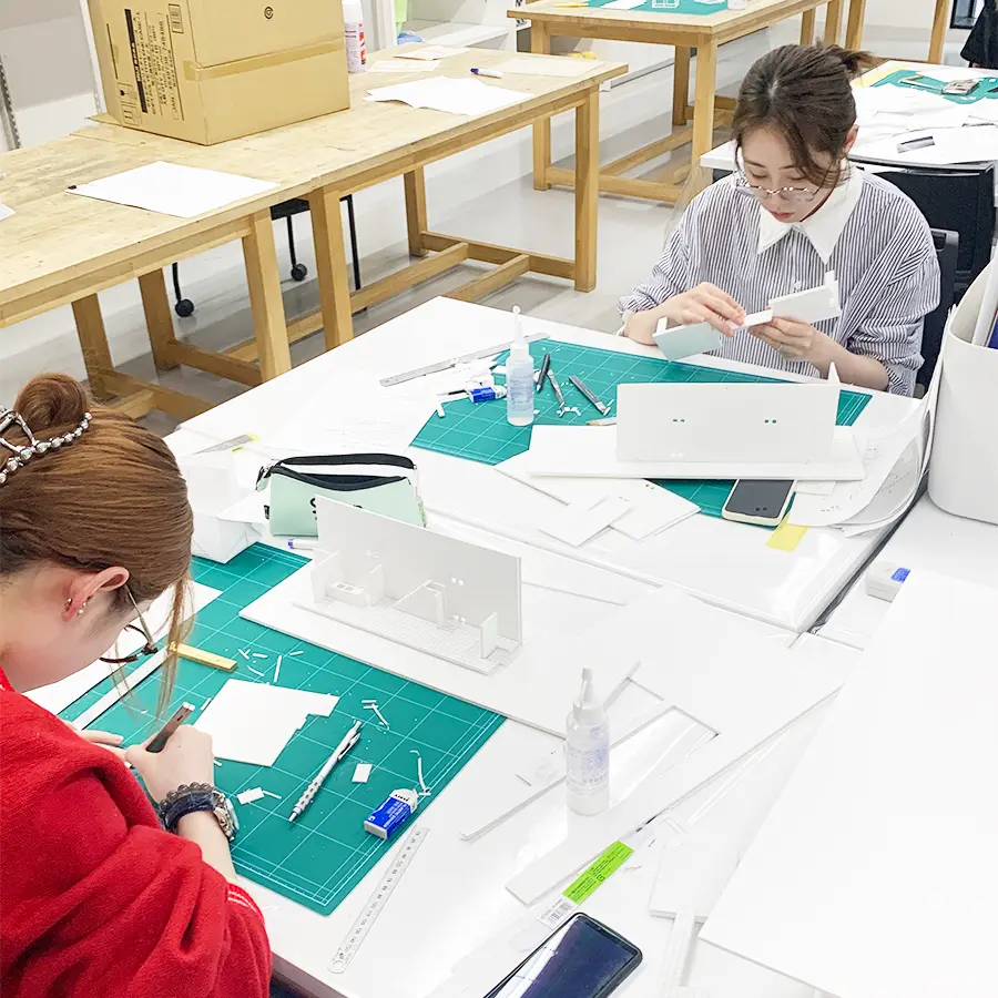 「建築クリエイター科ってどんな学科?」「校舎や教室、先生はどんな人?」「就職についても知りたい」など、学科の説明や専門技術の学びかた、授業や学校生活、卒業後の進路などについて、わかりやすく説明します。