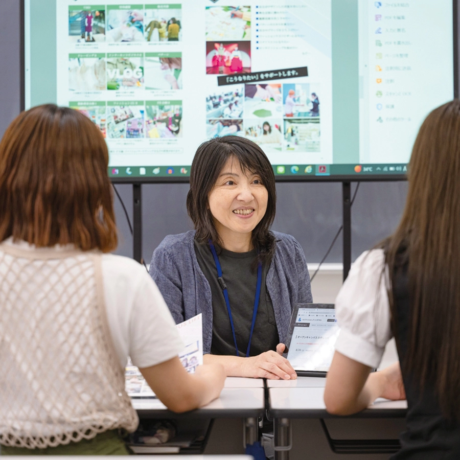 「入学について」「初心者なので不安です」「授業の課題について」「就職について」など、気になることや不安なことは、なんでもお気軽にご相談ください。